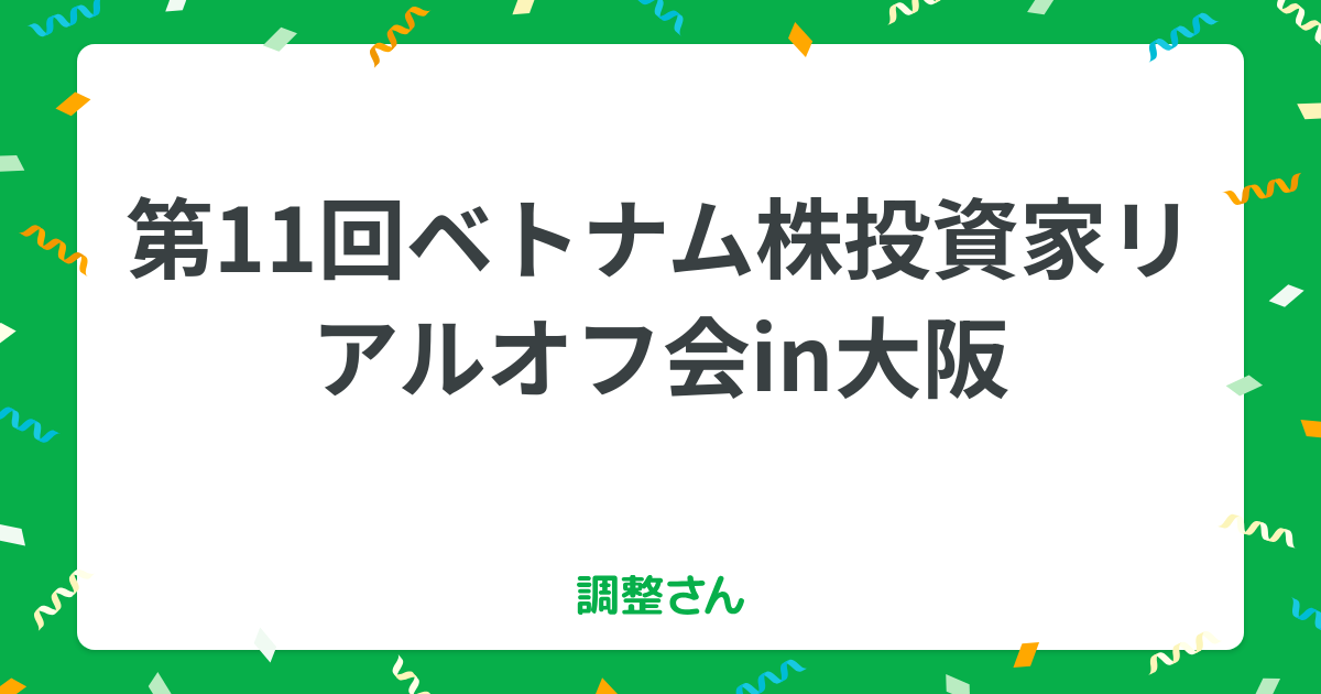 第11回ベトナム株投資家リアルオフ会in大阪のイベントページです。「出欠を入力する」ボタンから出欠を入力しましょう!